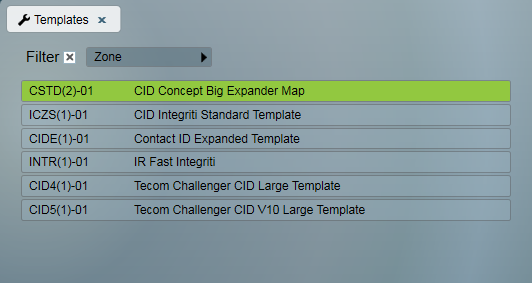 Zone - The zone information of a client. Many panels require a standard list of system zones that need to be applied to all clients using that panel. Applied to a client in the Zones Tab.